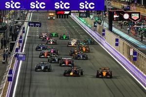 (250421) -- JEDDAH, 21 abril, 2025 (Xinhua) -- Imagen del 20 de abril de 2025 de vehículos de carreras arrancando durante la carrera del Gran Premio de Arabia Saudita de Fórmula Uno, en el Circuito Jeddah Corniche, en Jeddah, Arabia Saudita. (Xinhua/Qian Jun) (rtg) (ah) (vf)