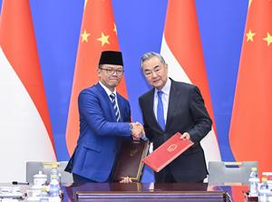 (250421) -- BEIJING, 21 abril, 2025 (Xinhua) -- El miembro del Buró Político del Comité Central del Partido Comunista de China y ministro de Relaciones Exteriores, Wang Yi, y el ministro indonesio de Relaciones Exteriores, Sugiono, firman un memorando de entendimiento sobre el establecimiento de un mecanismo integral de diálogo estratégico entre los Gobiernos chino e indonesio, después de la primera reunión de ministros del Diálogo Ministerial Conjunto de Relaciones Exteriores y Defensa, en Beijing, capital de China, el 21 de abril de 2025. Wang y el ministro de Defensa chino, Dong Jun, presidieron la reunión con Sugiono y el ministro de Defensa indonesio, Sjafrie Sjamsoeddin, en Beijing el lunes. (Xinhua/Yue Yuewei) (rtg) (ah) (ce)