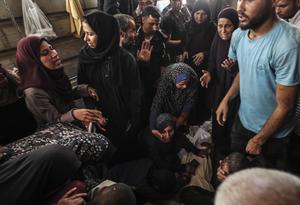 (250417) -- GAZA, 17 abril, 2025 (Xinhua) -- Personas se reúnen en un refugio tras un ataque aéreo israelí en el campamento de refugiados de Jabalia, en el norte de la Franja de Gaza, el 17 de abril de 2025. Al menos 39 palestinos murieron y docenas más resultaron heridos el jueves en ataques israelíes en toda la Franja de Gaza, de acuerdo con la defensa civil con sede en Gaza. (Xinhua/Mahmoud Zaki) (jg) (ah) (vf)