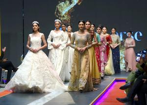 (250420) -- KARACHI, 20 abril, 2025 (Xinhua) -- Imagen del 19 de abril de 2025 de modelos presentando creaciones durante un desfile de moda, en la ciudad portuaria de Karachi, en el sur de Pakistán. (Xinhua/Str) (oa) (da)