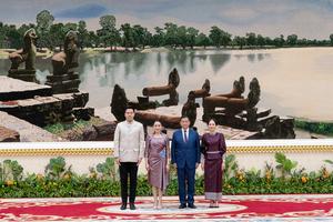 (250423) -- PHNOM PENH, 23 abril, 2025 (Xinhua) -- El primer ministro camboyano, Hun Manet (2-d), y la visitante primera ministra tailandesa, Paetongtarn Shinawatra (2-i), posan para una fotografía, en Phnom Penh, Camboya, el 23 de abril de 2025. Camboya y Tailandia se comprometieron el miércoles a seguir mejorando las relaciones bilaterales y la cooperación en todas las áreas para beneficio mutuo. (Xinhua/Nitola) (jg) (da) (vf)