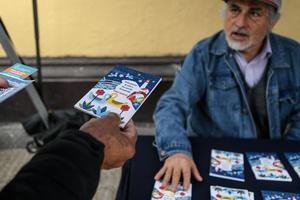 (250423) -- SANTIAGO, 23 abril, 2025 (Xinhua) -- Una persona recibe un ejemplar gratuito del libro "Veinte poemas de amor y una canción desesperada" del poeta chileno, Pablo Neruda, durante la actividad "Libros Libres" con motivo del Día Internacional del Libro y del Derecho de Autor, en Santiago, capital de Chile, el 23 de abril de 2025. (Xinhua/Jorge Villegas) (jv) (ah) (ra) (ce)