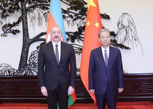 (250423) -- BEIJING, 23 abril, 2025 (Xinhua) -- Zhao Leji, presidente del Comité Permanente de la Asamblea Popular Nacional (APN), se reúne con el presidente de Azerbaiyán, Ilham Aliyev, en Beijing, capital de China, el 23 de abril de 2025. (Xinhua/Yao Dawei) (jg) (da) (ce)