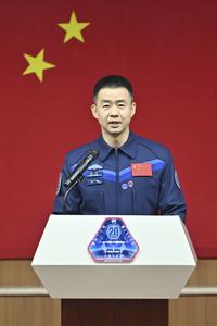 (250423) -- JIUQUAN, 23 abril, 2025 (Xinhua) -- El astronauta para la misión de vuelo espacial Shenzhou-20, Chen Dong, se reúne con la prensa en el Centro de Lanzamiento de Satélites de Jiuquan, en el noroeste de China, el 23 de abril de 2025. Los tres astronautas para la misión de vuelo espacial Shenzhou-20 de China, Chen Dong, Chen Zhongrui y Wang Jie, se reunieron el miércoles con la prensa. (Xinhua/Li Xin) (ah) (ra) (vf)
