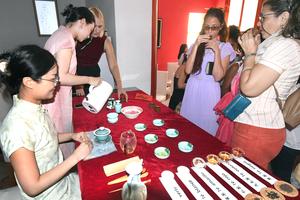 (250423) -- LA HABANA, 23 abril, 2025 (Xinhua) -- Personas degustan té después de ser realizada la tradicional ceremonia del té como parte de las actividades llevadas a cabo con motivo de la celebración del Día de la Lengua China en la sede del Instituto Confucio de La Habana, en La Habana, capital de Cuba, el 23 de abril de 2025. Jóvenes cubanos interesados en la lengua y cultura chinas participaron en diversas actividades organizadas por el Instituto Confucio de La Habana, con motivo de la reciente celebración del Día de la Lengua China. (Xinhua/Joaquín Hernández) (jh) (jg) (da) (vf)
