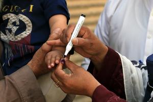 (250423) -- PESHAWAR, 23 abril, 2025 (Xinhua) -- Imagen del 21 de abril de 2025 de una trabajadora de la salud marcando a un niño después de administrarle gotas de la vacuna contra la polio durante la campaña de los Días Nacionales de Inmunización, en Peshawar, en el noroeste de Pakistán. Pakistán ha confirmado su séptimo caso de polio del año después de que el virus fuera detectado en un niño de la provincia noroccidental de Khyber Pakhtunkhwa, dijo el Ministerio de Servicios Nacionales de Salud en un comunicado el miércoles. (Xinhua/Saeed Ahmad) (ah) (ra) (vf)