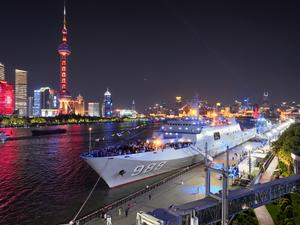 (250423) -- BEIJING, 23 abril, 2025 (Xinhua) -- Vista aérea tomada con un dron el 22 de abril de 2025 de personas participando en la jornada de puertas abiertas de un buque de guerra para conmemorar el 76 aniversario de la Armada del Ejército Popular de Liberación (EPL) de China, en Shanghai, en el este de China. La Armada del EPL de China celebró el miércoles su 76 aniversario, reafirmando su compromiso de convertirse en una fuerza naval de clase mundial dedicada a salvaguardar tanto la seguridad nacional como la paz global. (Xinhua/Ding Liang) (jg) (da) (ce)