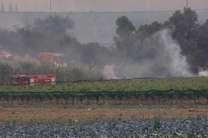 (250424) -- LOD, 24 abril, 2025 (Xinhua) -- Imagen del 23 de abril de 2025 de fuerzas de respuesta a emergencias trabajando para extinguir un incendio forestal, cerca de Lod, en el centro de Israel. (Xinhua/Gil Cohen Magen) (jg) (ah) (ce)