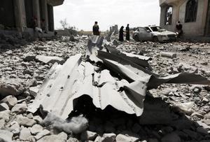 (250427) -- SANA, 27 abril, 2025 (Xinhua) -- Personas observan un automóvil dañado después de los ataques aéreos estadounidenses, en Saná, Yemen, el 27 de abril de 2025. Los ataques aéreos estadounidenses realizados durante la noche contra Saná, la capital yemení bajo control de los hutíes, abatieron a dos personas e hirieron a otras diez, informaron el domingo las autoridades sanitarias controladas por los hutíes. Los ataques se dirigieron a varios puntos de Saná, según las autoridades, que añadieron que entre los heridos había dos mujeres y tres niños. Todos los heridos fueron trasladados a hospitales locales para recibir tratamiento. (Xinhua/Mohammed Mohammed) (rtg) (da)