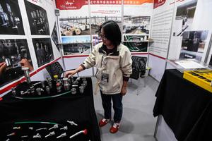 (250426) -- SANTIAGO, 26 abril, 2025 (Xinhua) -- Imagen del 24 de abril de 2025 de una expositora trabajando en un estand de una compañía china durante la decimoctava edición de Expomin, en Santiago, capital de Chile. Centenares de empresas chinas proveedoras de la minería exhiben en Santiago de Chile sus productos y servicios en la feria minera más grande de América Latina, Expomin, donde buscan destacar sus avances tecnológicos y ventajas competitivas. (Xinhua/Jorge Villegas) (jv) (jg) (da)