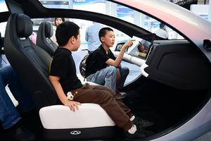 (250426) -- HEFEI, 26 abril, 2025 (Xinhua) -- Niños experimentan una cabina inteligente en la 3ª Feria de Transformación de Logros de Innovación en Ciencia y Tecnología de China (Anhui), en Hefei, capital de la provincia de Anhui, en el este de China, el 26 de abril de 2025. Comenzando el sábado y cubriendo una superficie total de exposición de 20.000 metros cuadrados, la feria ha atraído a más de 2.000 empresas y cerca de 200 universidades. Se han establecido seis zonas de exposición para mostrar los últimos logros científicos y tecnológicos de todo el mundo. Diez eventos de emparejamiento de cooperación, incluyendo presentaciones itinerantes y actividades comerciales, también se celebrarán para promover la comercialización de proyectos científicos y tecnológicos. (Xinhua/Zhou Mu) (oa) (da)