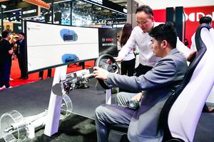 (250425) -- SHANGHAI, 25 abril, 2025 (Xinhua) -- Un visitante prueba una solución de un sistema de dirección de Bosch Huayu en la XXI Exposición Internacional de la Industria Automotriz de Shanghai, en Shanghai, en el este de China, el 25 de abril de 2025. Con el tema "Abrazando la Innovación, Empoderando el Futuro", la exposición, también conocida como Auto Shanghai 2025, comenzó aquí el miércoles, atrayendo a casi 1.000 empresas destacadas de 26 países y regiones. Además del debut de nuevos modelos, los fabricantes de automóviles también aprovecharon el escenario con sus últimas tecnologías para vehículos inteligentes, como la conducción inteligente, sistemas de inteligencia artificial (IA) y cabinas inteligentes. (Xinhua/Wang Xiang) (rtg) (ra) (vf)