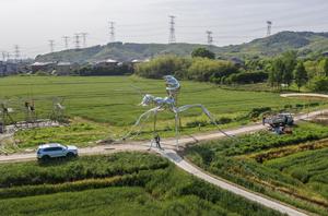 (250425) — HUZHOU, 25 abril, 2025 (Xinhua) — Vista aérea tomada con un dron el 25 de abril de 2025 de una obra de arte exhibida en los campos, en el poblado de Donglin, en la ciudad de Huzhou de la provincia de Zhejiang, en el este de China. Un evento de arte terrestre comenzó el viernes en los campos de trigo del poblado de Donglin. Profesores y estudiantes de diversas academias de bellas artes chinas formaron el equipo creativo central, produciendo 42 piezas de arte terrestre. Tomando la vasta tierra como lienzo y los elementos naturales como entorno, los artistas integraron hábilmente diversas formas de arte, como las instalaciones de arte y el paisajismo en los campos y las aldeas, permitiendo a los turistas y a la población local disfrutar de las obras de arte en el campo. (Xinhua/Xu Yu) (jg) (da) (vf)