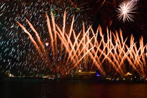 (250426) -- LA VALETA, 26 abril, 2025 (Xinhua) -- Imagen del 25 de abril de 2025 de fuegos artificiales iluminando el cielo durante el Festival Internacional de Fuegos Artificiales de Malta en el Gran Puerto, en La Valeta, Malta. El festival anual de fuegos artificiales comenzó aquí el martes y durará hasta el 30 de abril. (Xinhua/Jonathan Borg) (jg) (da)