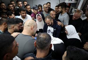 (250426) -- NAPLUSA, 26 abril, 2025 (Xinhua) -- Imagen del 25 de abril de 2025 de personas lamentándose por el palestino Abdul Khaleq Jbour durante su funeral, en el poblado de Salem, en la ciudad cisjordana de Naplusa. El fue asesinado por el ejército israelí durante una incursión militar en Salem. (Xinhua/Ayman Nobani) (jg) da)