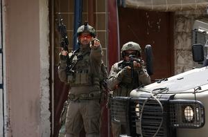 (250425) -- NAPLUSA, 25 abril, 2025 (Xinhua) -- Imagen del 24 de abril de 2025 de soldados israelíes vistos durante una operación militar en el campamento de refugiados de Balata, en el este de Naplusa, en el norte de Cisjordania. (Xinhua/Nidal Eshtayeh) (oa) (ra) (vf)