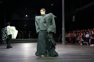 (250425) -- PRAGA, 25 abril, 2025 (Xinhua) -- Un modelo presenta una creación de Sofia Blahutova durante la edición de primavera de la Semana de la Moda Mercedes-Benz de Praga, en Praga, República Checa, el 25 de abril de 2025. (Xinhua/Dana Kesnerova) (rtg) (ra) (vf)