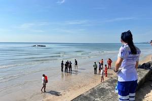 (250425) -- HUA HIN, 25 abril, 2025 (Xinhua) -- Un avión policial es visto estrellándose en el mar frente al distrito de Cha-am, en la provincia de Phetchaburi, Tailandia, el 25 de abril de 2025. Un pequeño avión de la Policía se estrelló el viernes por la mañana cerca de la costa de Hua Hin, un popular destino turístico en la provincia tailandesa de Phetchaburi, causando la muerte de seis personas, informaron las autoridades. Según las autoridades, el accidente ocurrió durante un vuelo de prueba en el marco de un entrenamiento de paracaidismo. (Xinhua) (rtg) (ra) (ce)