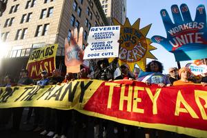 (250502) -- NUEVA YORK, 2 mayo, 2025 (Xinhua) -- Imagen del 1 de mayo de 2025 de personas participando en una manifestación para conmemorar el Día Internacional de los Trabajadores, en Nueva York, Estados Unidos. (Xinhua/Michael Nagle) (jg) (da) (ce)