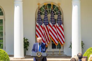 (250502) -- WASHINGTON, 2 mayo, 2025 (Xinhua) -- Imagen del 1 de mayo de 2025 del presidente estadounidense, Donald Trump, asistiendo a un evento del Día Nacional de Oración, en la Casa Blanca, en Washington, D.C., Estados Unidos. Trump nombró el jueves a su asesor de seguridad nacional, Mike Waltz, para ocupar el cargo del próximo embajador de Estados Unidos ante las Naciones Unidas. (Xinhua/Hu Yousong) (oa) (ra)