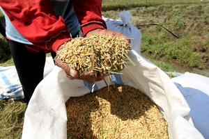 (250506) -- SUKOHARJO, 6 mayo, 2025 (Xinhua) -- Un agricultor sostiene arroz con cáscara después de molerlo durante la época de cosecha, en la aldea de Demakan, en la Regencia de Sukoharjo, Java Central, Indonesia, el 6 de mayo de 2025. Se espera que la producción total de arroz de Indonesia alcance los 18,76 millones de toneladas entre enero y junio de este año, marcando un significativo aumento del 11,17 por ciento en comparación con el mismo período del año pasado, predijo el viernes la Agencia Central de Estadísticas. (Xinhua/Bram Selo) (oa) (ah) (vf)