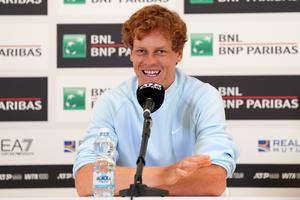 (250506) -- ROMA, 6 mayo, 2025 (Xinhua) -- Imagen del 5 de mayo de 2025 de Jannik Sinner, de Italia, hablando durante una conferencia de prensa del Abierto de Italia, en Roma, Italia. El jugador mejor clasificado del mundo regresa al torneo de tenis Abierto de Italia después de una suspensión por dopaje de tres meses impuesta por la Agencia Mundial Antidopaje. (Xinhua/Alberto Lingria) (oa) (ah) (vf)
