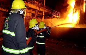(250506) -- HUDAYDA, 6 mayo, 2025 (Xinhua) -- Captura de pantalla de un video del 5 de mayo de 2025 de bomberos extinguiendo el fuego de una fábrica de cemento después de ataques aéreos israelíes, en Hudayda, Yemen. Aviones de combate israelíes lanzaron el lunes docenas de ataques aéreos contra la provincia yemení de Hudayda, matando al menos a dos personas e hiriendo a otras 42, según las autoridades sanitarias dirigidas por el grupo militante hutí. (Xinhua/Centro de Medios Hutí) (oa) (ah) (ce)