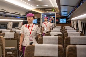 (250509) — CHONGQING, 9 mayo, 2025 (Xinhua) — Trabajadoras ferroviarias esperan la salida dentro del tren de prueba de alta velocidad, en la municipalidad de Chongqing, en el suroeste de China, el 9 de mayo de 2025. Con la salida del tren de prueba de alta velocidad de la Estación de Ferrocarril del Este de Chongqing, la depuración y prueba conjunta de la sección de Chongqing del recién construido ferrocarril de alta velocidad Chongqing-Xiamen se completaron con éxito y comenzó su prueba de funcionamiento el viernes. (Xinhua/Tang Yi) (jg) (da) (vf)