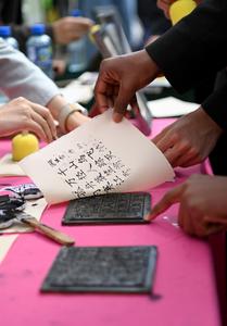 (250509) -- LONDRES, 9 mayo, 2025 (Xinhua) -- Imagen del 8 de mayo de 2025 de un estudiante asistiendo a un taller de impresión con bloques de madera durante un evento para celebrar el Día del Idioma Chino, en Londres, Reino Unido. Un evento para celebrar el Día del Idioma Chino de este año se realizó el jueves en Londres, reuniendo a unos 100 estudiantes de seis escuelas de Reino Unido para celebrar el idioma y la cultura china. (Xinhua/Jia Yuchen) (oa) (ra) (vf)