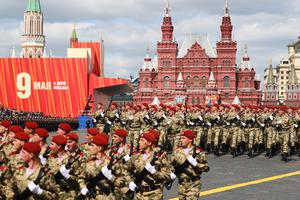 (250509) -- MOSCU, 9 mayo, 2025 (Xinhua) -- Soldados marchan durante un gran desfile para conmemorar el 80º aniversario de la victoria en la Gran Guerra Patriótica de la Unión Soviética, en Moscú, Rusia, el 9 de mayo de 2025. (Xinhua/Bai Xueqi) (oa) (ra) (vf)