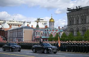 (250509) -- MOSCU, 9 mayo, 2025 (Xinhua) -- El ministro de Defensa ruso, Andrei Belousov (frente), pasa revista a las tropas durante un gran desfile para conmemorar el 80° aniversario de la victoria en la Gran Guerra Patriótica de la Unión Soviética, en Moscú, Rusia, el 9 de mayo de 2025. (Xinhua/Xie Huanchi) (oa) (ra) (vf)