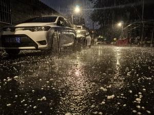 (250513) -- BEIJING, 13 mayo, 2025 (Xinhua) -- Imagen del 13 de mayo de 2025 de los granizos en el distrito de Xicheng, en Beijing, capital de China. Partes de Beijing atestiguaron fuertes vientos y tormentas eléctricas el martes. (Xinhua/Li He) (jg) (ra) (ce)