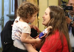 (250514) -- CARACAS, 14 mayo, 2025 (Xinhua) -- Imagen cedida por la Presidencia de Venezuela de la niña Maikelys Espinoza (i) siendo sostenida por su madre Yorely Bernal (d), al ser recibidas por el presidente venezolano, Nicolás Maduro, en el Palacio de Miraflores, en Caracas, Venezuela, el 14 de mayo de 2025. Maduro afirmó el miércoles que el retorno a territorio venezolano de la niña Maikelys Espinoza, de dos años de edad y quien se encontraba retenida por autoridades estadounidenses, es una victoria del pueblo y agradeció también al presidente de Estados Unidos, Donald Trump, por haberlo facilitado. (Xinhua/Presidencia de Venezuela) (jg) (da) (vf)