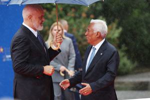 (250516) -- TIRANA, 16 mayo, 2025 (Xinhua) -- El primer ministro albanés, Edi Rama (i), conversa con el presidente del Consejo Europeo, Antonio Costa, durante la sexta Cumbre de la Comunidad Política Europea (CPE), en Tirana, Albania, el 16 de mayo de 2025. La sexta Cumbre de la CPE se llevó a cabo el viernes en Tirana, capital de Albania, con la asistencia de aproximadamente 50 líderes nacionales y regionales, así como jefes de la Unión Europea y de instituciones internacionales que asisten para abordar los desafíos económicos y de seguridad compartidos. (Xinhua/Zhao Dingzhe) (jg) (da) (ce)