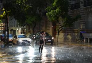 (250518) -- BUENOS AIRES, 18 mayo, 2025 (Xinhua) -- Imagen del 17 de mayo de 2025 de una mujer caminando bajo la lluvia en una calle, en Buenos Aires, Argentina. La ciudad de Buenos Aires ha sido testigo de lluvias continuas recientemente en su temporada de otoño tardío. (Xinhua/Zhang Duo) (oa) (ah)