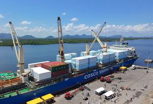 (250522) — SAN LORENZO, 22 mayo, 2025 (Xinhua) — Imagen del 20 de mayo de 2025 de la ceremonia de recepción de materiales de China para el proyecto de ampliación de escuelas agrícolas, en el puerto de Henecán, en el municipio de San Lorenzo, departamento de Valle, Honduras. China anunció un paquete de medidas de apoyo para Honduras, que incluye: la disposición de importar 12.000 toneladas de camarón hondureño durante el próximo año, sobre la base de una capacidad suficiente, garantía de calidad y precios razonables; la ampliación continua de la compra de café hondureño; y la pronta adquisición en Honduras de hojas de tabaco y puros por un valor de 3 millones de dólares. (Xinhua/David de la Paz) (dp) (jg) (vf) (ce)