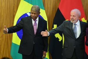 (250523) -- BRASILIA, 23 mayo, 2025 (Xinhua) -- El presidente de Brasil, Luiz Inácio Lula da Silva (d), y el presidente de Angola, Joao Lourenco (i), reaccionan al término de una reunión bilateral, en el Palacio de Planalto, en Brasilia, Brasil, el 23 de mayo de 2025. (Xinhua/Lucio Tavora) (lt) (jg) (da) (vf)