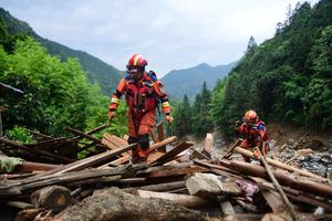 (250523) -- GUILIN, 23 mayo, 2025 (Xinhua) -- Rescatistas trabajan en el sitio de un torrente de montaña y un deslizamiento de tierra, en el distrito de Longsheng, en la región autónoma de la etnia zhuang de Guangxi, en el sur de China, el 23 de mayo de 2025. Se ha confirmado la muerte de tres personas y cinco permanecen desaparecidas luego de que un torrente de montaña y un deslizamiento de tierra afectaran en las primeras horas de la mañana del viernes una aldea de la región autónoma de la etnia zhuang de Guangxi, en el sur de China, según informaron las autoridades locales. (Xinhua/Pan Zhixiang) (jg) (da) (vf)