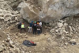 (250601) -- CIREBON, 1 junio, 2025 (Xinhua) -- Vista aérea tomada con un dron proveída por la Agencia Nacional de Búsqueda y Rescate de Indonesia (BASARNAS) de rescatistas trabajando en el sitio de deslizamientos de tierra en una cantera, en Cirebon, Java Occidental, Indonesia, el 1 de junio de 2025. La cifra de muertes de los deslizamientos de tierra en una cantera en la provincia de Java Occidental en Indonesia el 30 de mayo incrementó a 19 hasta el domingo. (Xinhua/BASARNAS) (rtg) (oa) (da)