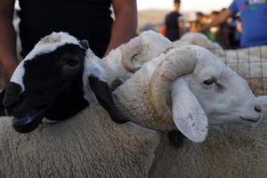 (250603) -- BOUSSAADA, 3 junio, 2025 (Xinhua) -- Imagen del 1 de junio de 2025 de ovejas a la venta en un mercado de ganado previo al festival musulmán de Eid al-Adha, o la fiesta del Sacrificio, en Boussaada, Argelia. (Xinhua) (jg) (ra) (vf)