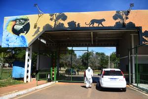 (250604) — BRASILIA, 4 junio, 2025 (Xinhua) — Un trabajador de la salud desinfecta un vehículo dentro de una barrera sanitaria instalada como una de las medidas preventivas para contener cualquier foco de la gripe aviar, en el zoológico de Brasilia, en Brasilia, Brasil, el 4 de junio de 2025. (Xinhua/Lucio Tavora) (lt) (jg) (da) (vf)