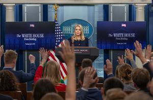 (250604) -- WASHINGTON, 4 junio, 2025 (Xinhua) -- Imagen del 3 de junio de 2025 de la secretaria de Prensa de la Casa Blanca, Karoline Leavitt, tomando preguntas durante una conferencia de prensa en la Casa Blanca, en Washington, D.C., Estados Unidos. La administración estadounidense ha presionado a sus socios comerciales mediante cartas para que presenten sus mejores ofertas antes del miércoles, confirmó la Casa Blanca el martes. La secretaria de Prensa de la Casa Blanca, Karoline Leavitt, dijo que las cartas enviadas por el Representante Comercial de Estados Unidos eran "solo para darles un recordatorio amistoso de que la fecha límite se acerca". (Xinhua/Hu Yousong) (jg) (da) (ce)