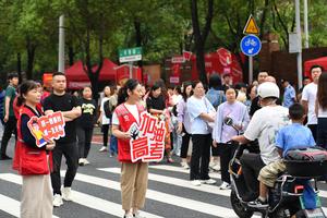 (250608) -- CHANGSHA, 8 junio, 2025 (Xinhua) -- Voluntarias mantienen el orden frente a un sitio del examen nacional de ingreso a la universidad, en Changsha, en la provincia de Hunan, en el centro de China, el 8 de junio de 2025. El distrito de Tianxin de Changsha ha organizado a voluntarios para brindar ayuda para estudiantes y sus padres en múltiples sitios locales del examen, durante el examen nacional de ingreso a la universidad de este año. (Xinhua/Chen Zhenhai) (rtg) (da)