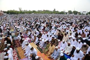 (250607) -- BHOPAL, 7 junio, 2025 (Xinhua) -- Personas ofrecen oraciones de Eid al-Adha, en la ciudad de Bhopal, capital del estado de Madhya Pradesh, India, el 7 de junio de 2025. (Xinhua/Str) (oa) (da)