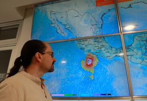 (250607) -- CIUDAD DE MÉXICO, 7 junio, 2025 (Xinhua) -- Imagen del 21 de mayo de 2025 del investigador Francisco Estrada Porrúa, experto en cambio climático de la Universidad Nacional Autónoma de México, observando en una pantalla un mapa climatológico de México, en la Ciudad de México, capital de México. México se está calentando a un ritmo alarmante, pues su temperatura ha aumentado 3,2 grados Celsius (°C) por siglo, por encima del promedio global de 2 °C, afirmó Estrada Porrúa. (Xinhua/Pool Contreras) (fc) (rtg) (da)