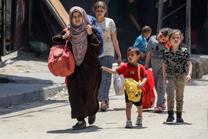 (250609) — GAZA, 9 junio, 2025 (Xinhua) — Palestinos evacuados de Jabalia, en el norte de la Franja de Gaza, llegan a la Ciudad de Gaza, el 9 de junio de 2025. Las Fuerzas de Defensa de Israel (FDI) emitieron el sábado una advertencia de evacuación para residentes en dos áreas del norte de la Franja de Gaza previo a los ataques. La advertencia aplica para el vecindario de Abd al-Rahman, en el noroeste de la Ciudad de Gaza y el vecindario de Nahda, en el campamento de refugiados de Jabalia, anunció el vocero de las FDI, Avichay Adraee, en la red social X. (Xinhua/Rizek Abdeljawad) (rtg) (oa) (vf)