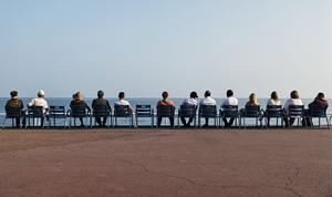 (250611) -- NIZA, 11 junio, 2025 (Xinhua) -- Imagen del 10 de junio de 2025 de personas sentadas en las famosas sillas azules disfrutando de la vista del mar, en Niza, Francia. La tercera UNOC se inauguró el lunes en Niza, una ciudad costera en el sur de Francia, bajo el tema "Acelerar la acción y movilizar a todos los actores para conservar y utilizar sosteniblemente el océano". (Xinhua/Gao Jing) (ra) (vf)