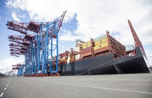 (250622) -- HAMBURGO, 22 junio, 2025 (Xinhua) -- Imagen del 28 de mayo de 2025 de un barco de contenedores en la Terminal de Contenedores Tollerort, en Hamburgo, Alemania. El presidente de Estados Unidos, Donald Trump, anunció sus llamados aranceles recíprocos globales el 2 de abril, seguidos de una pausa temporal de 90 días. Desde finales de marzo hasta mediados de mayo, el tiempo de atraque perdido aumentó un 49 % en el puerto de Hamburgo y un 77 % en el de Bremen, según un informe publicado por Drewry, una consultora marítima con sede en Londres. (Xinhua/Zhang Fan) (rtg) (da)