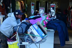 (250620) -- BRASILIA, 20 junio, 2025 (Xinhua) -- Un hombre empuja un carrito con productos en un centro comercial, en Brasilia, Brasil, el 20 de junio de 2025. (Xinhua/Lucio Tavora) (lt) (oa) (da) (vf)