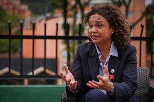 (250620) -- BOGOTÁ, 20 junio, 2025 (Xinhua) -- Imagen del 18 de junio de 2025 de la secretaria ejecutiva adjunta de la Convención de las Naciones Unidas de Lucha contra la Desertificación, Andrea Meza, hablando durante una entrevista con Xinhua, en Bogotá, Colombia. China es ejemplo a nivel global en recuperación de los suelos, señaló Meza a Xinhua, en el marco de la reciente celebración del Día Mundial contra la Desertificación y la Sequía, realizada en la ciudad de Bogotá. (Xinhua/Andrés Moreno) (am) (jg) (da) (ce)